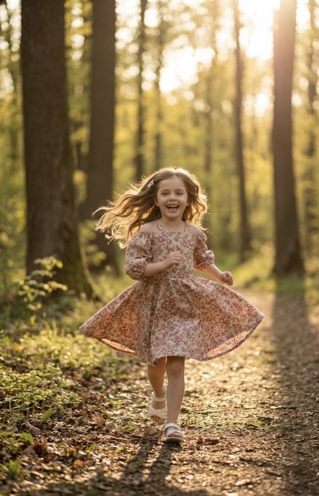 Het lentewind jurkje is gemaakt uit heerlijk zachte tetra katoen en danst mee bij elke stap. Licht, luchtig en comfortabel- perfect voor een lentefeest, communie of zonnige familiedag. De speelse zwierrok en natuurlijke uitstraling zorgen voor een tijdloze, pure look waarin elk meisje zich vrij kan bewegen en stralen.